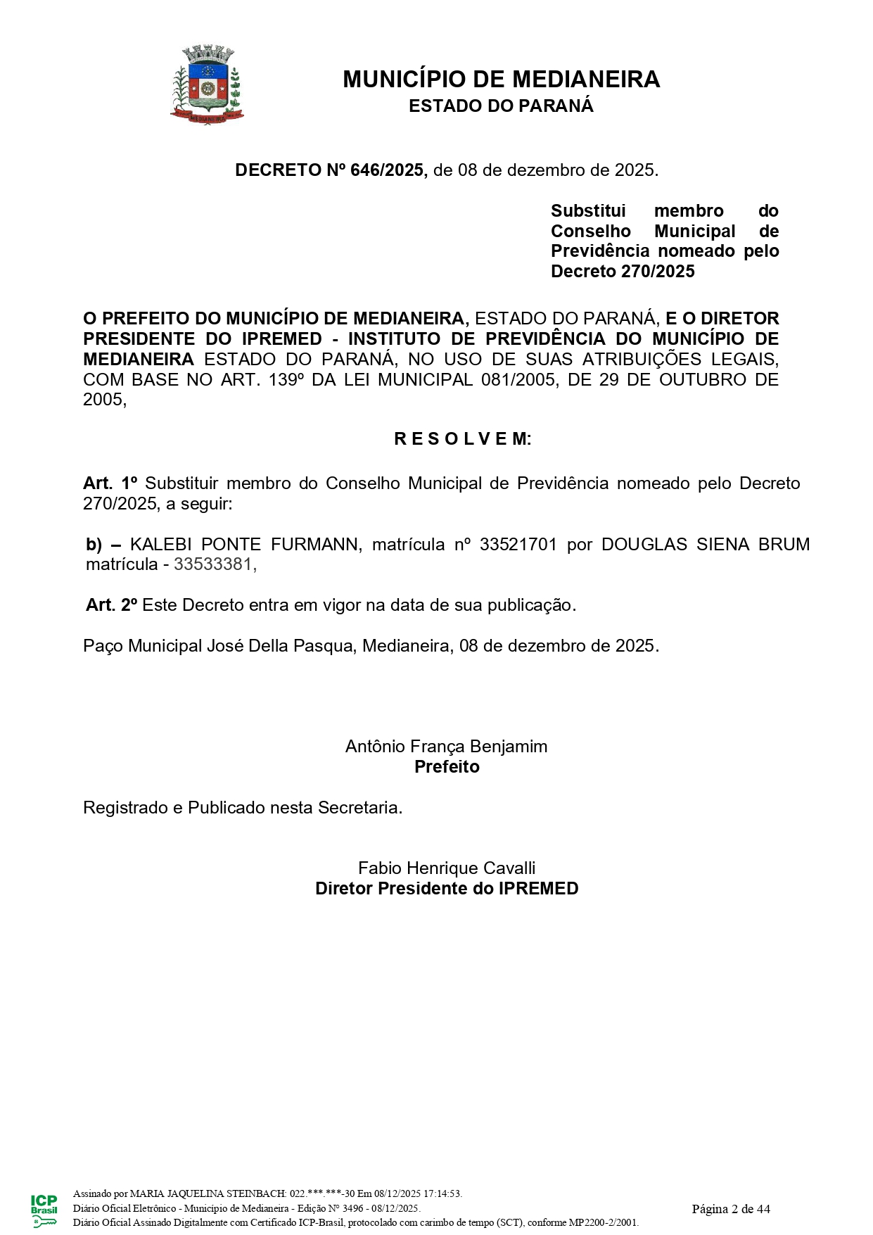 Douglas Siena Brum - (membro representante do Governo Municipal)